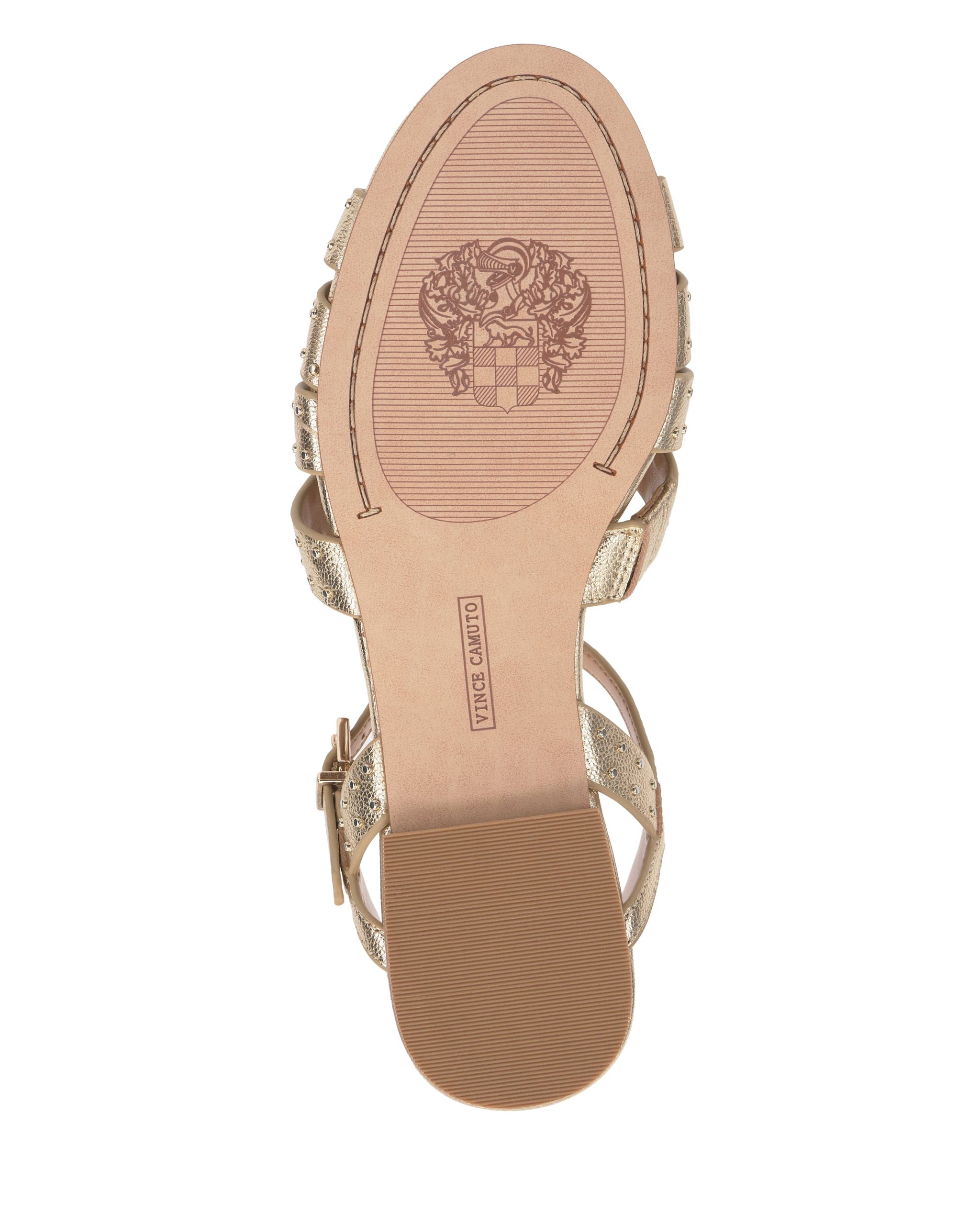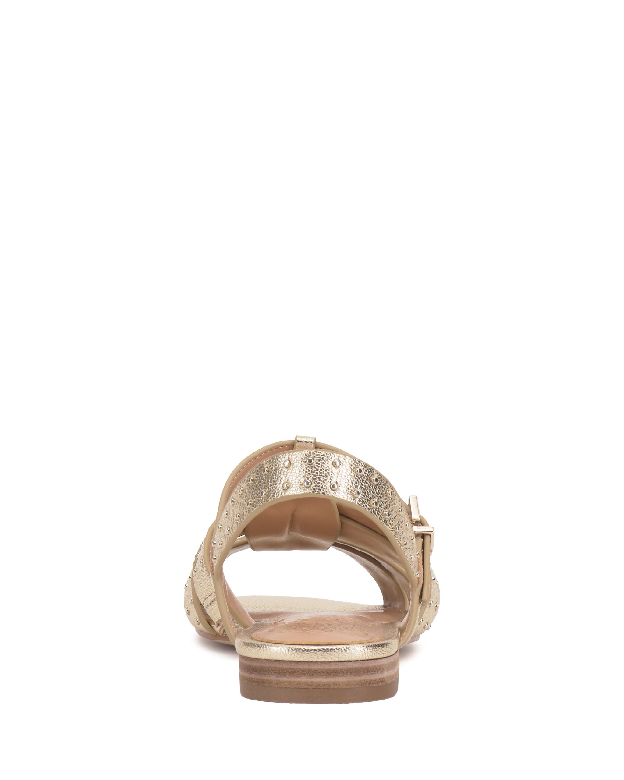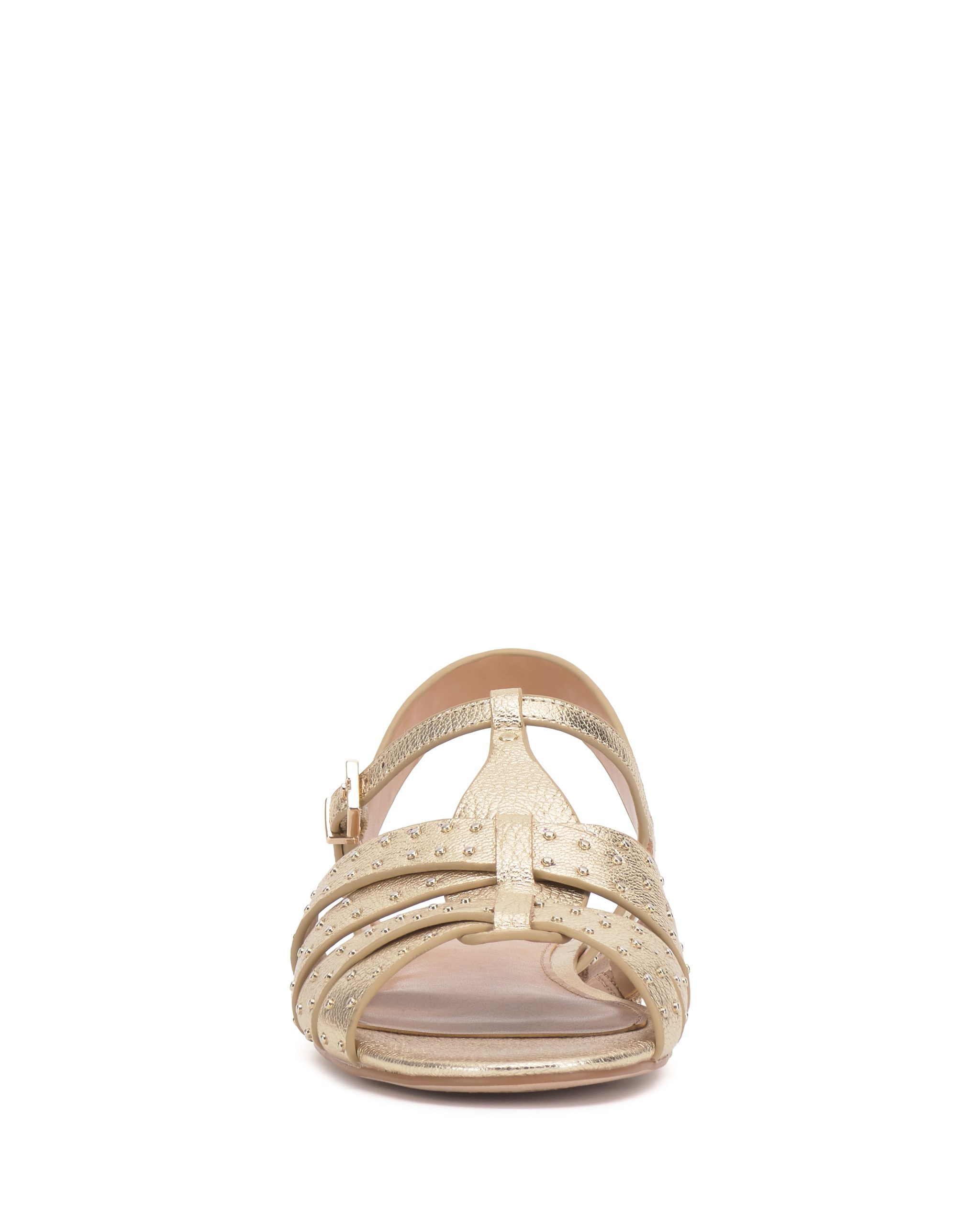 The Chaya sandal updates warm weather looks with modern edge. The strappy silhouette is embellished with sleek microstuds and features an adjustable buckle on the t-strap for the perfect fit.