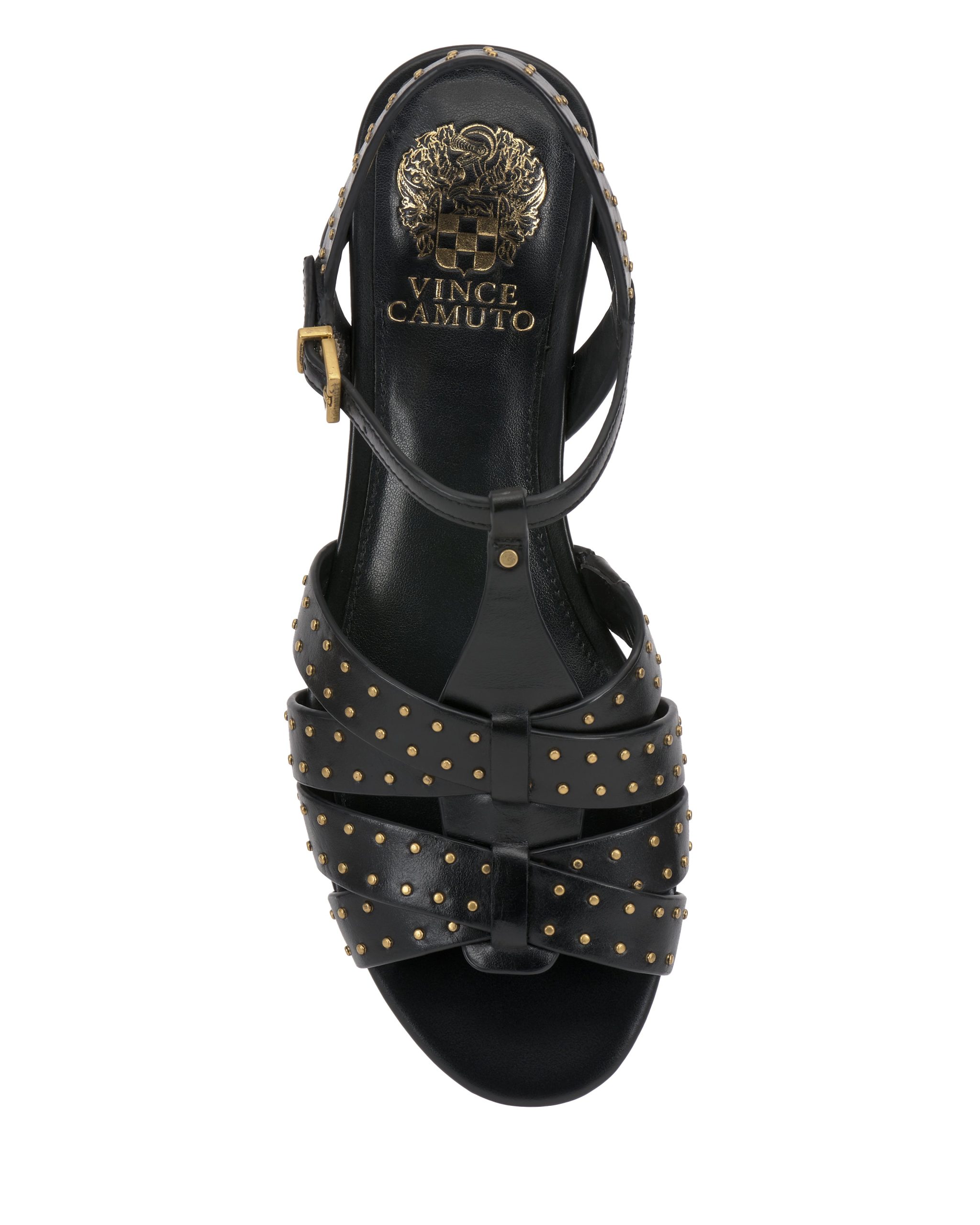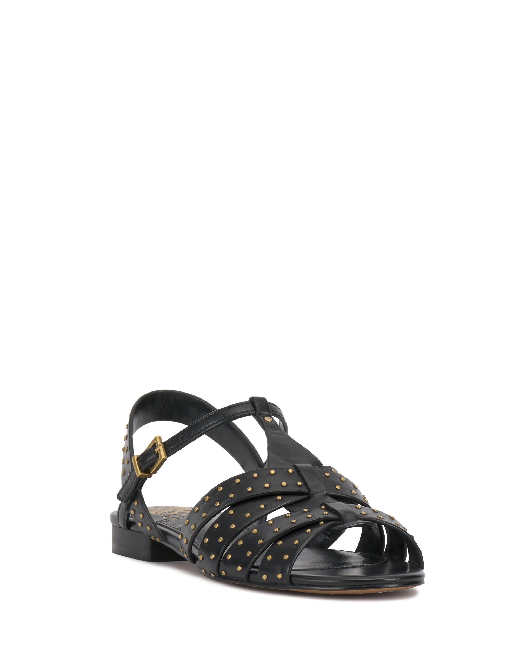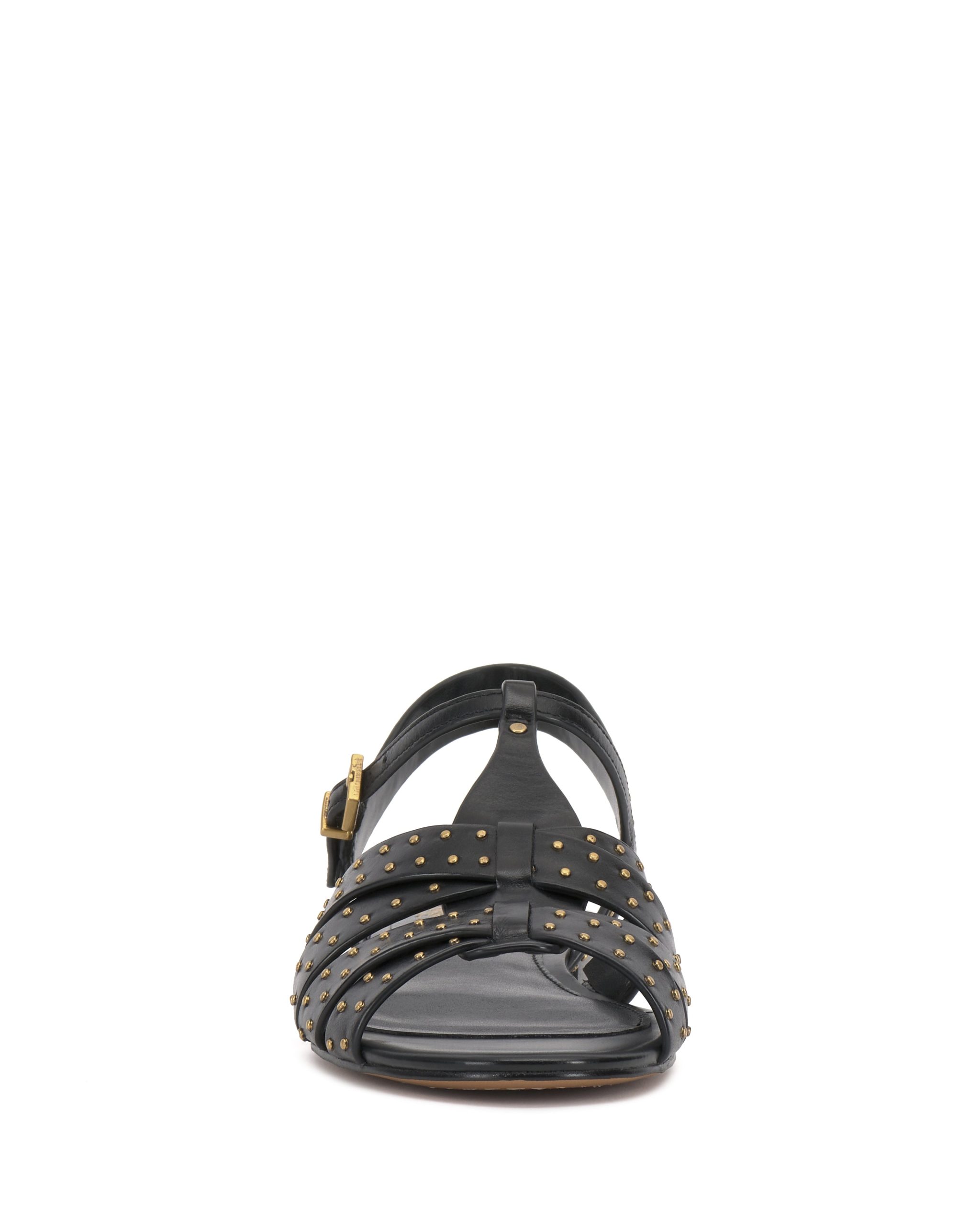 The Chaya sandal updates warm weather looks with modern edge. The strappy silhouette is embellished with sleek microstuds and features an adjustable buckle on the t-strap for the perfect fit.