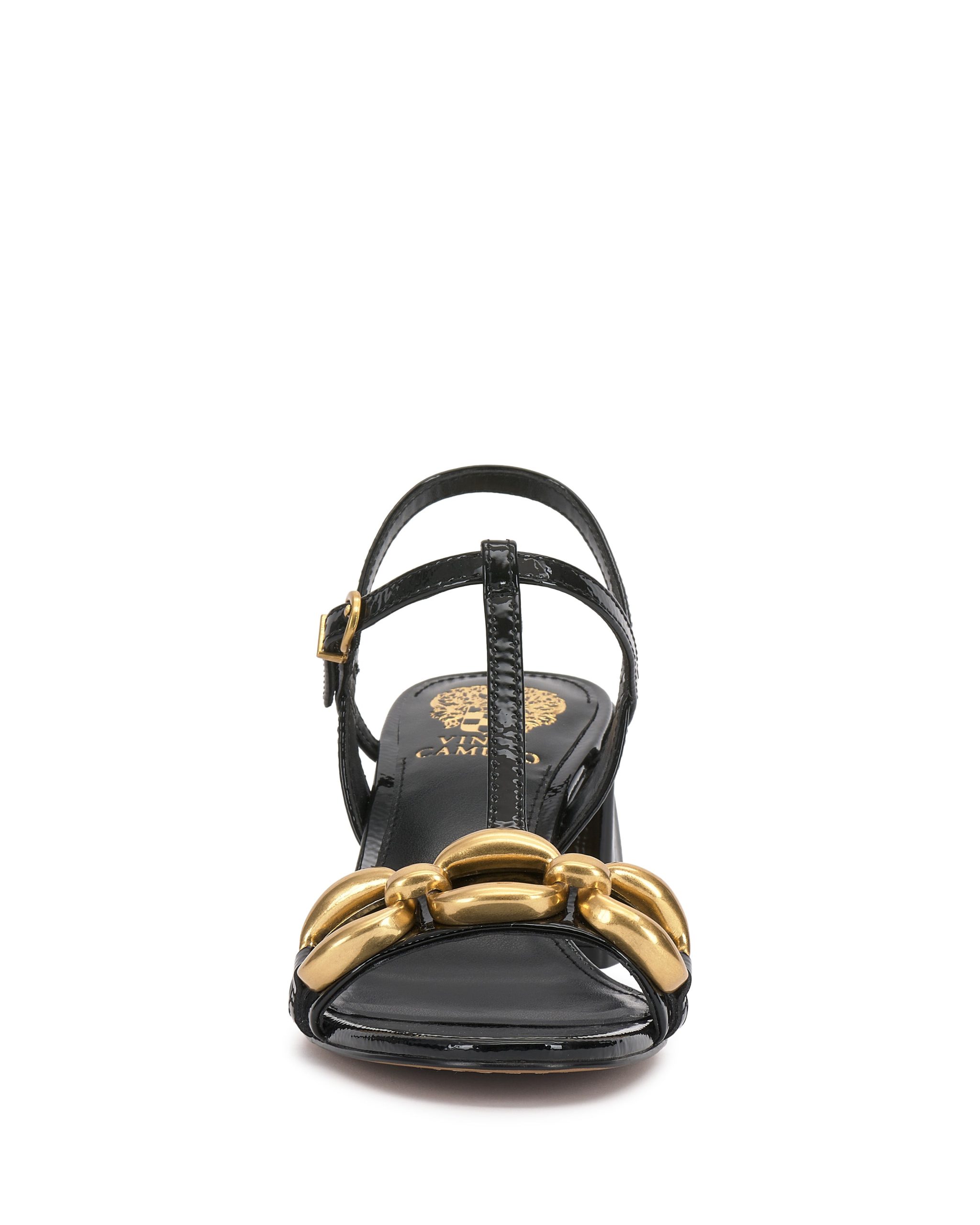 Elegant style gets a modern refresh with the Chirie. The delicate t-strap is offset by an oversized chain accent and block heel for a versatile take on the classic slingback.