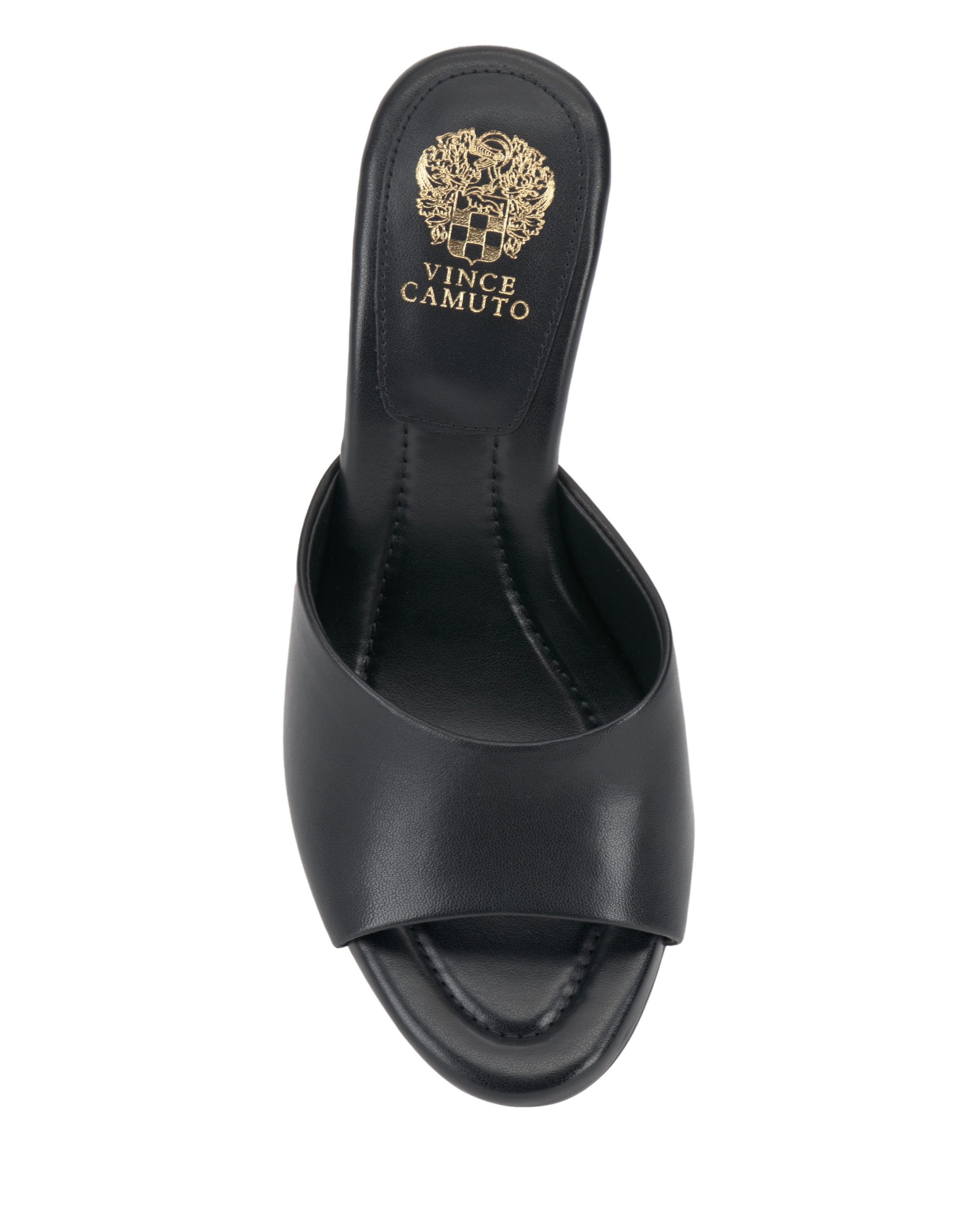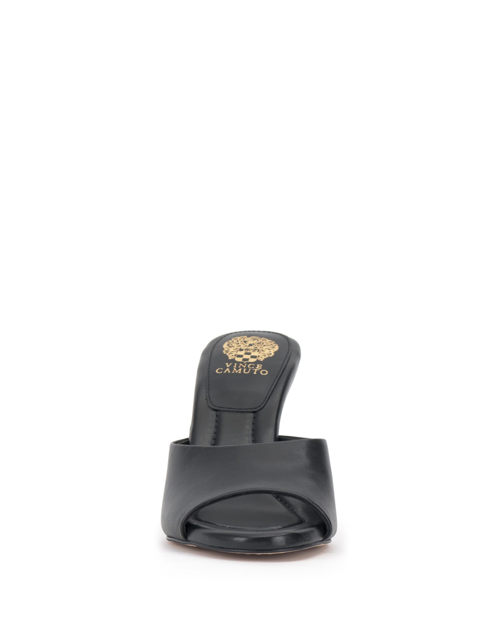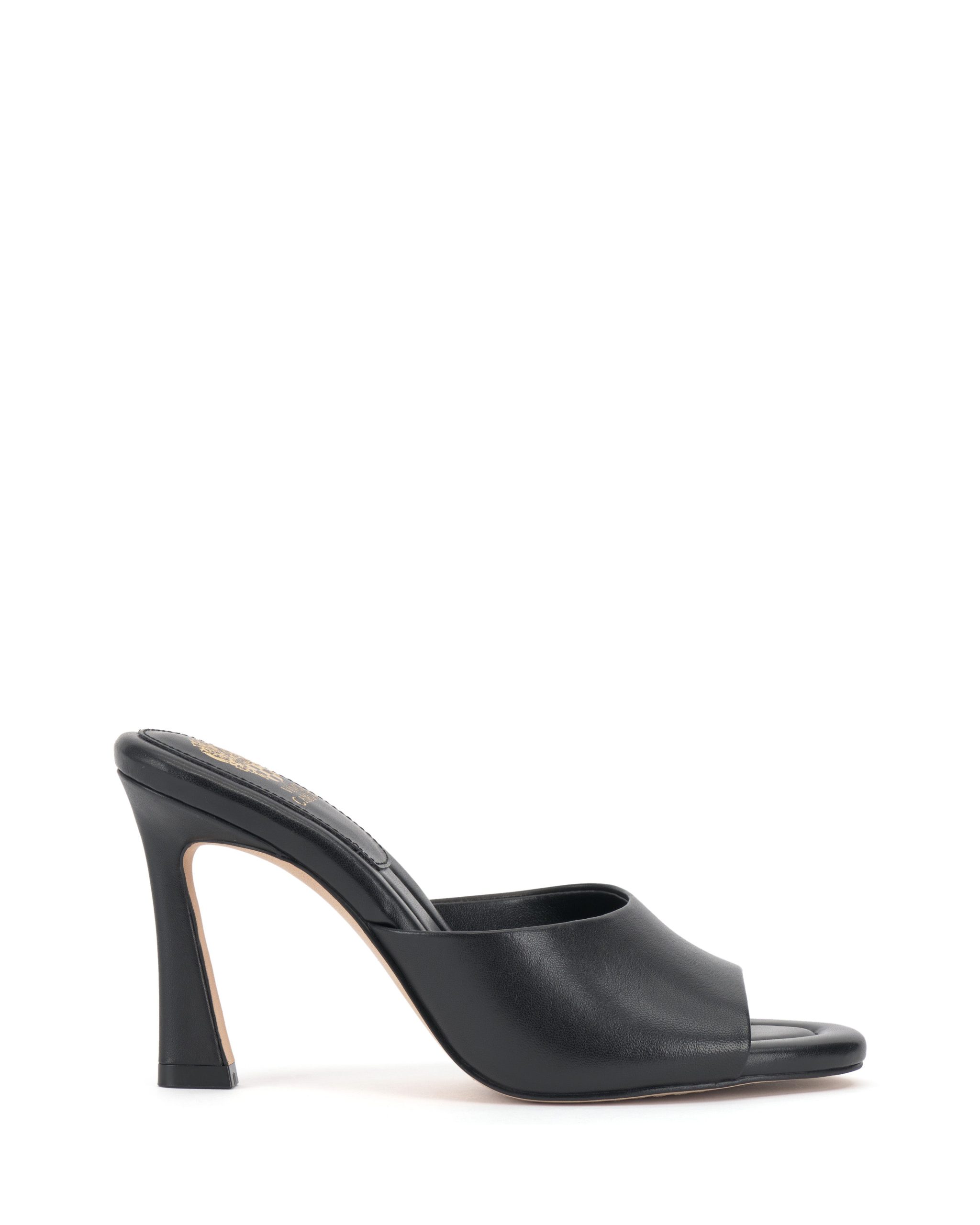 A minimalist mule gets an update with a flared heel. adding a modern architectural touch to the Paigely. Designed with an open round toe. the shoe features a stitched pillow footbed for all-day wearability and comfort. Wear it with cropped trousers and a blazer for a corner-office-to-cocktails look.
