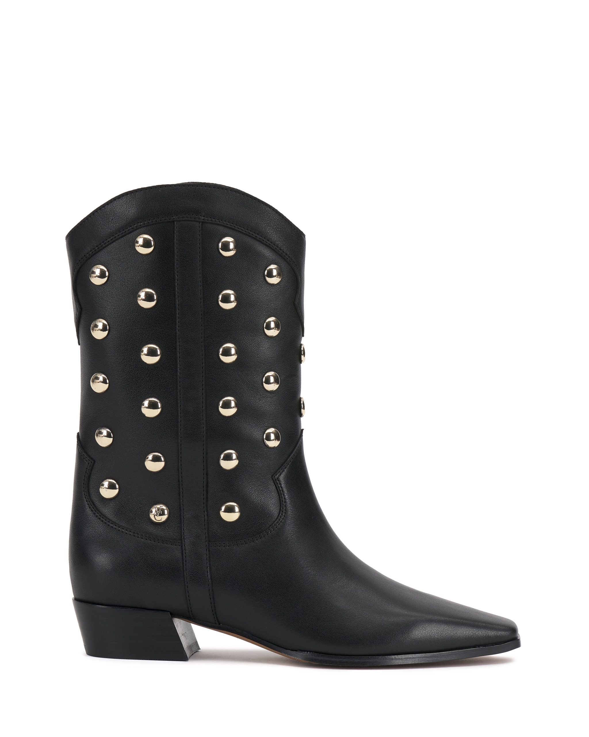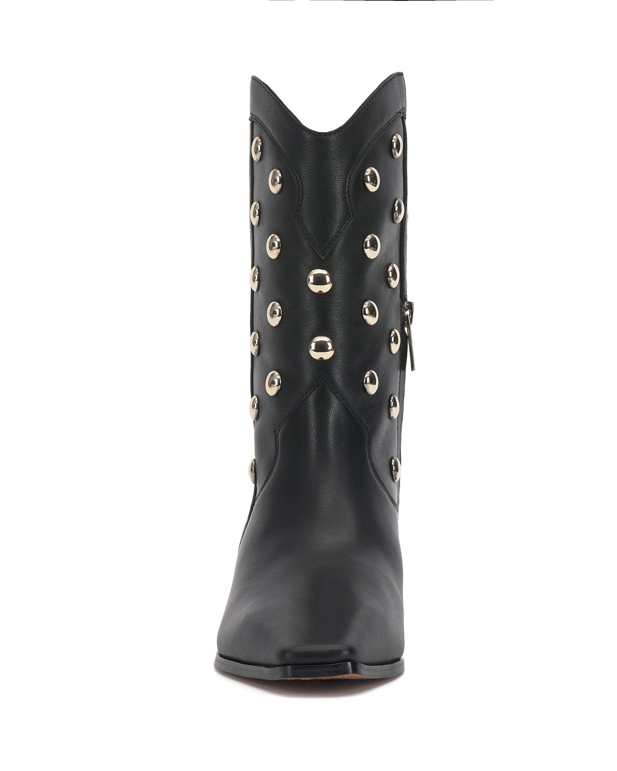 Classic western style meets modern attitude in the Prilie bootie. This cowboy boot features bold round studs on the western-inspired upper and a low block heel for a hint of height. Perfect for festivals. city strolls. or adding a bold touch to everyday looks. these boots are made for those who love to stand out.