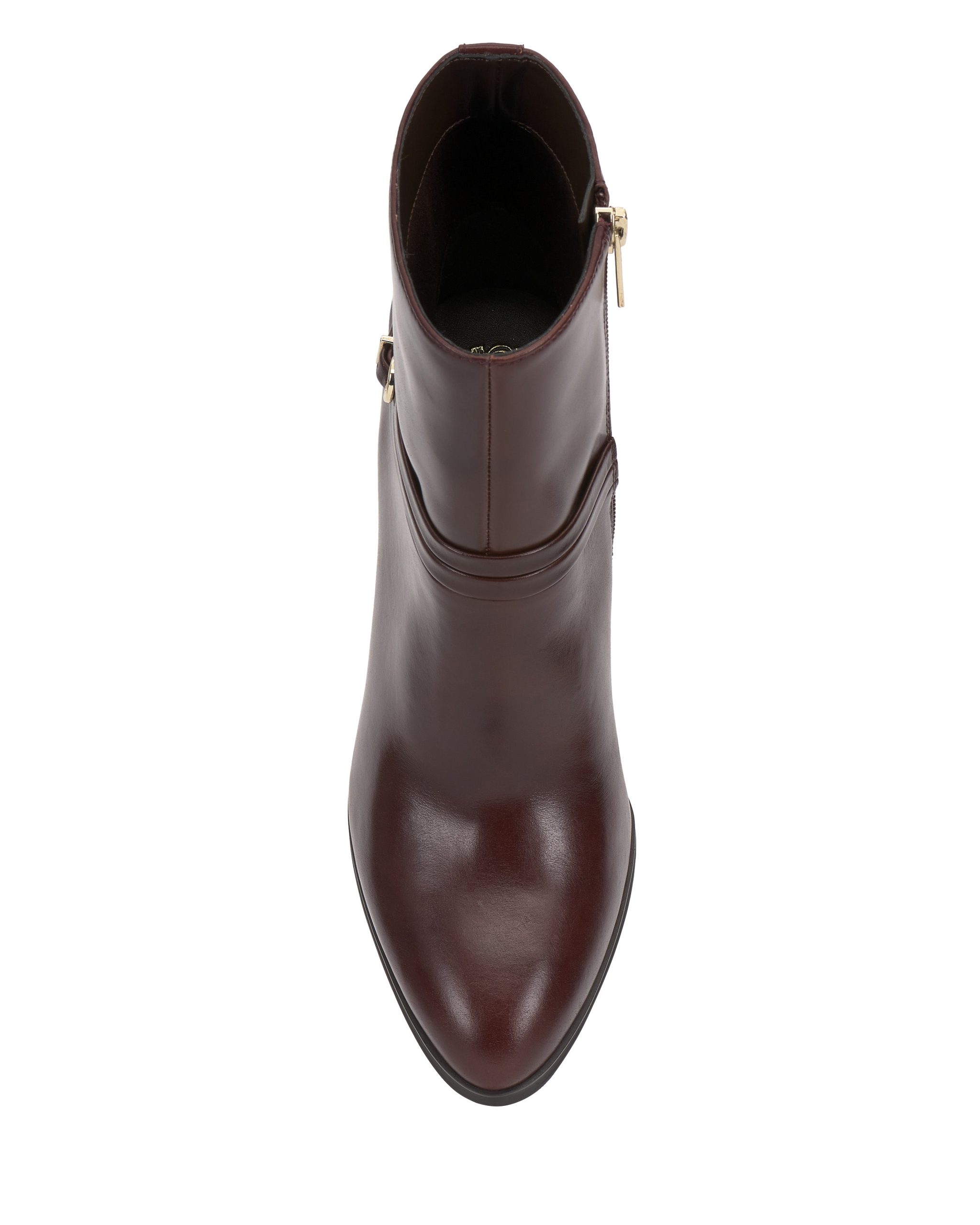 Designed for effortless elegance. the Sybilla bootie exudes refinement with its sleek silhouette and polished leather finish. The streamlined design is elevated by a delicate wraparound strap with a metal-tone buckle. adding a subtle equestrian-inspired touch. A high heel enhances the feminine ankle boot profile. making them perfect for day-to-night styling. Whether paired with tailored trousers or a flowing midi dress. these boots are a statement in timeless sophistication.