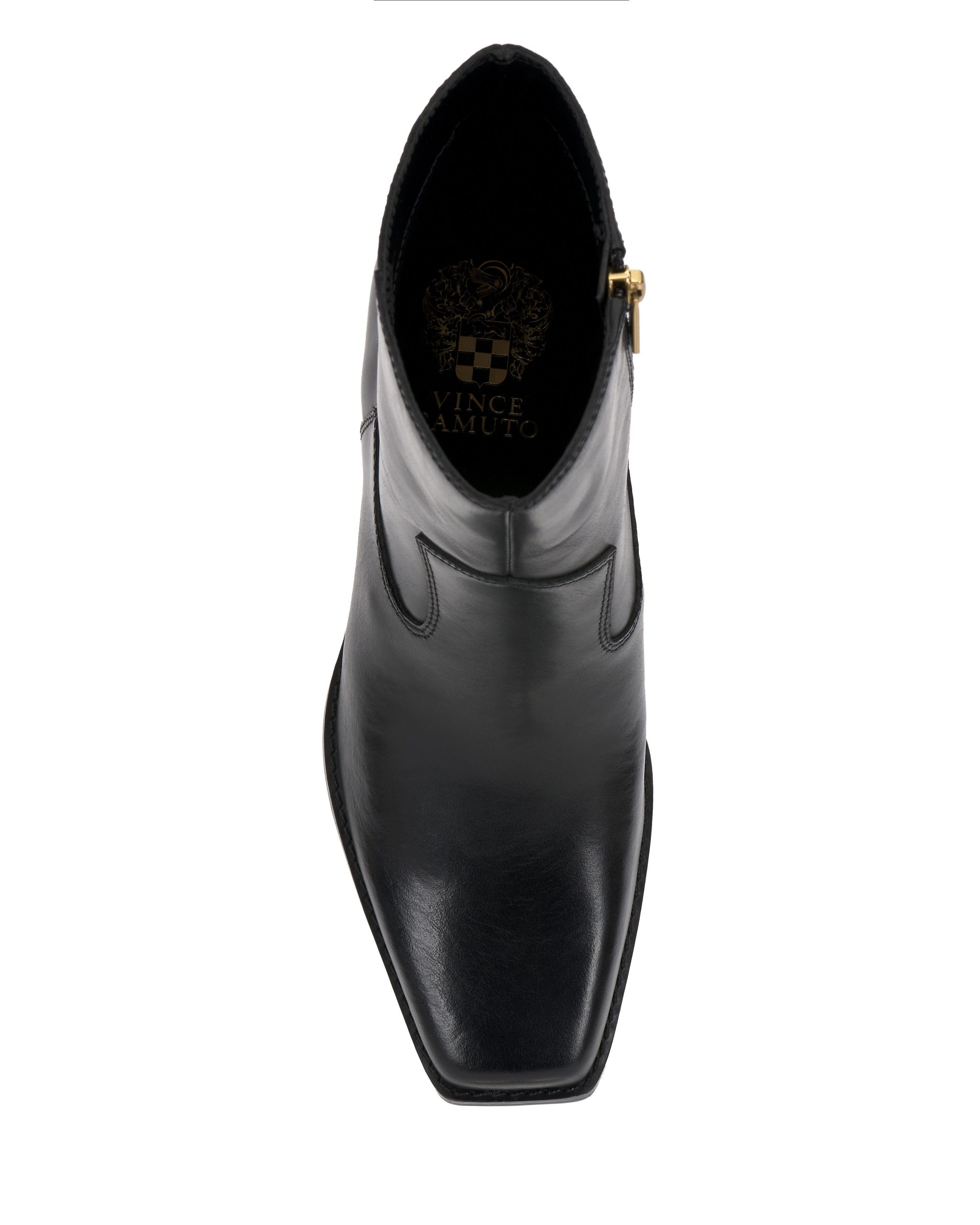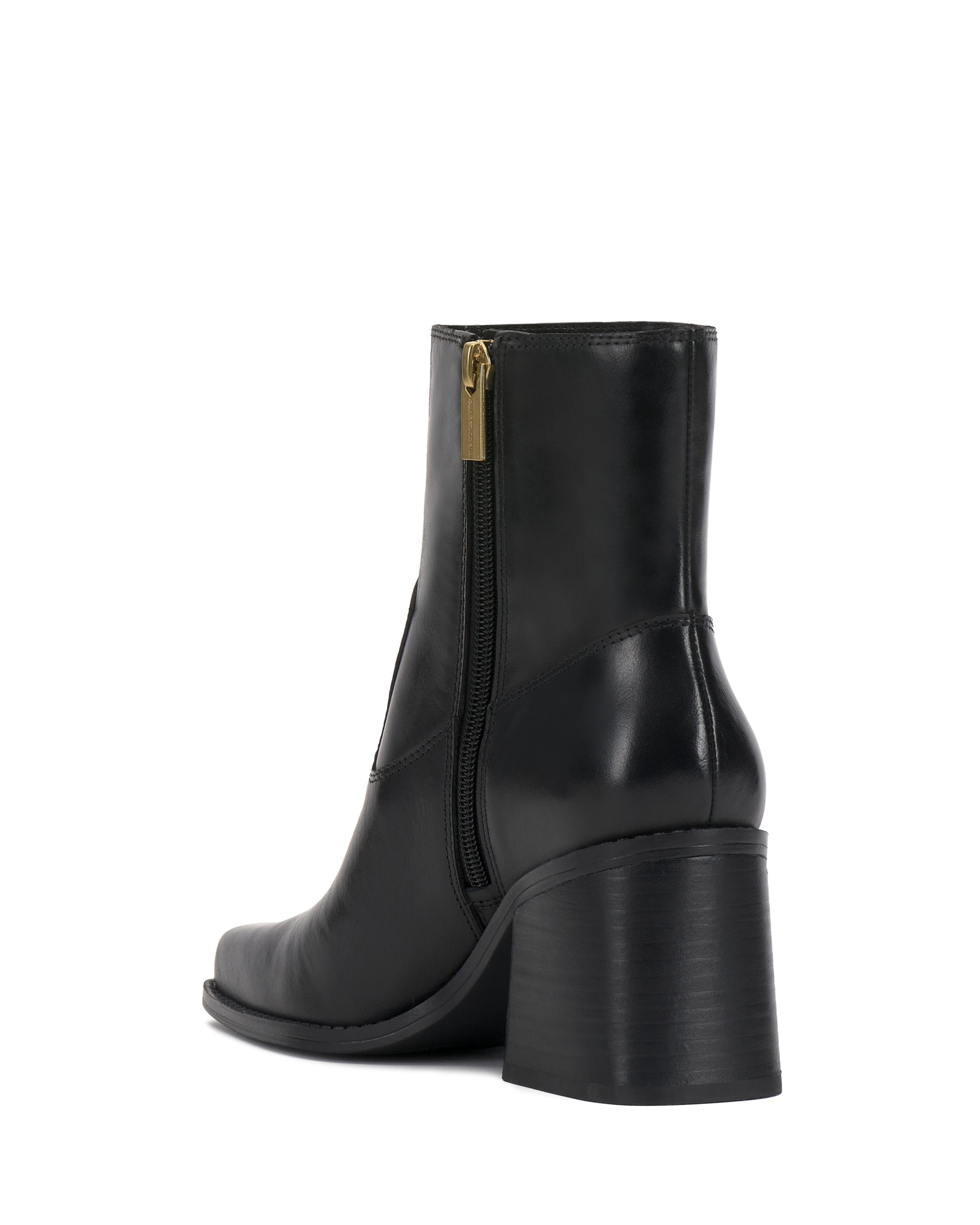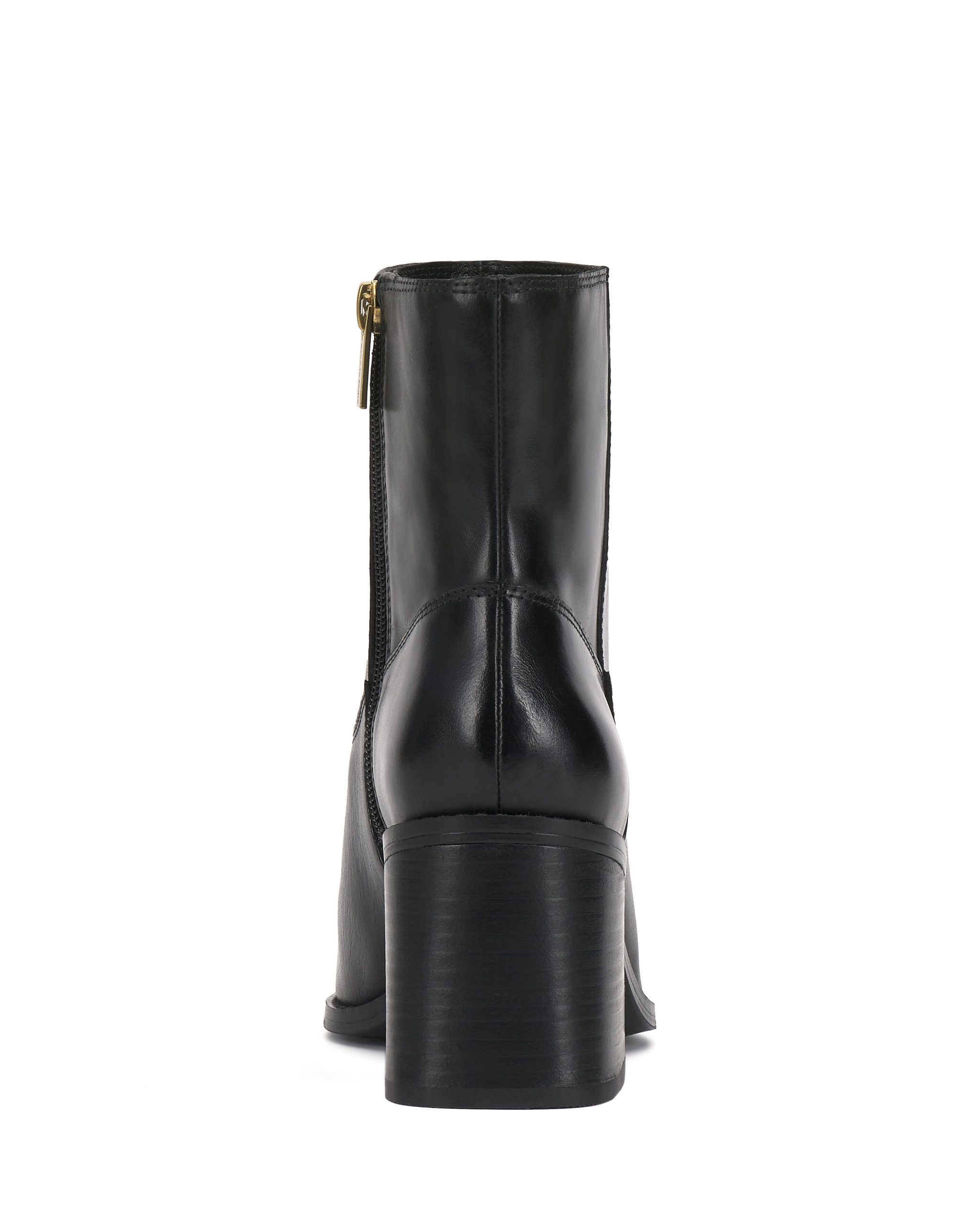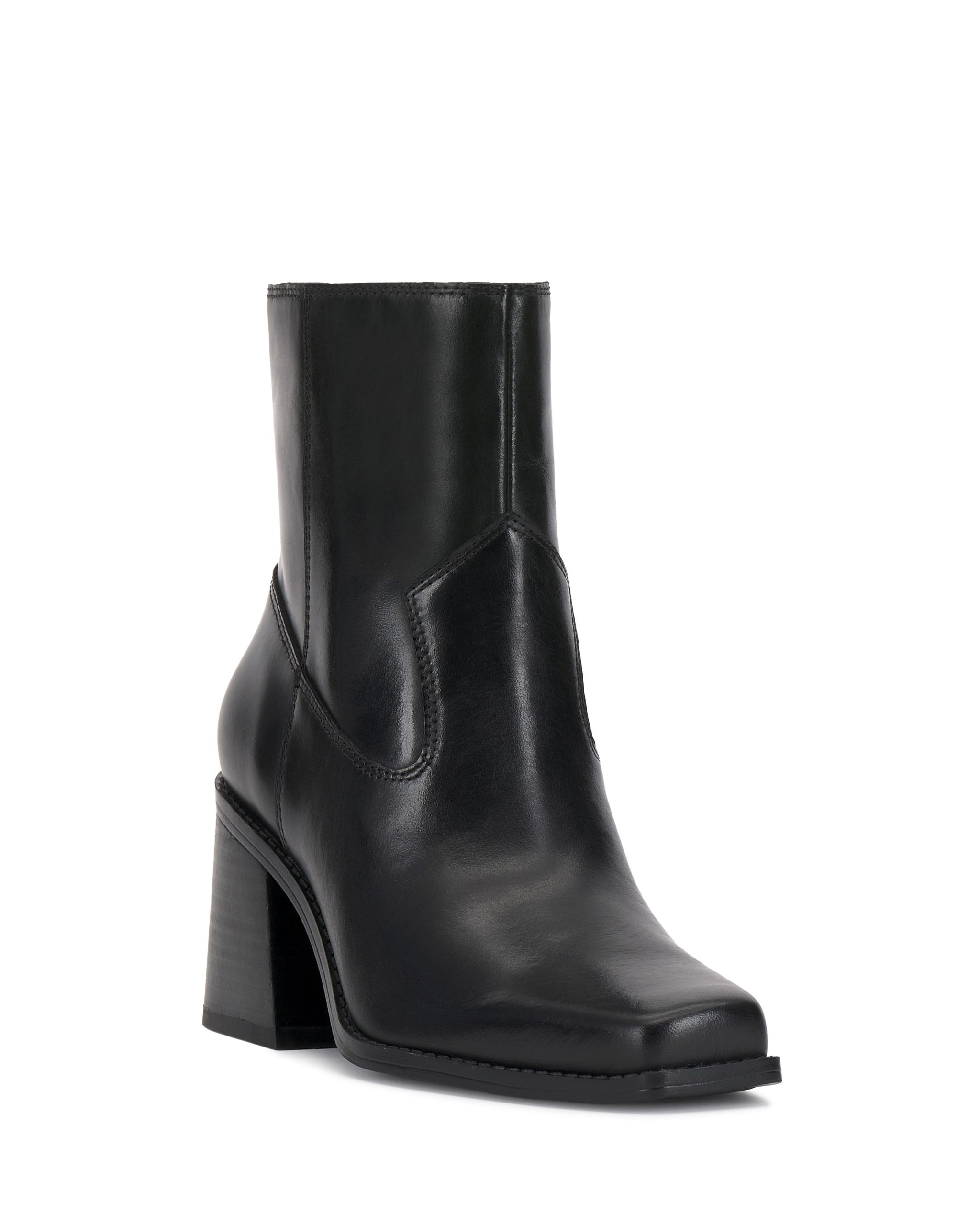 The Sybren bootie redefines modern sophistication with its polished design and a structured silhouette. Featuring a squared off toe. subtle western-inspired curved panel design. and an extra chunky block heel to strike the perfect balance between edgy and refined. Pair with your favorite denim or a flowy midi skirt to bring effortless confidence to any look.
